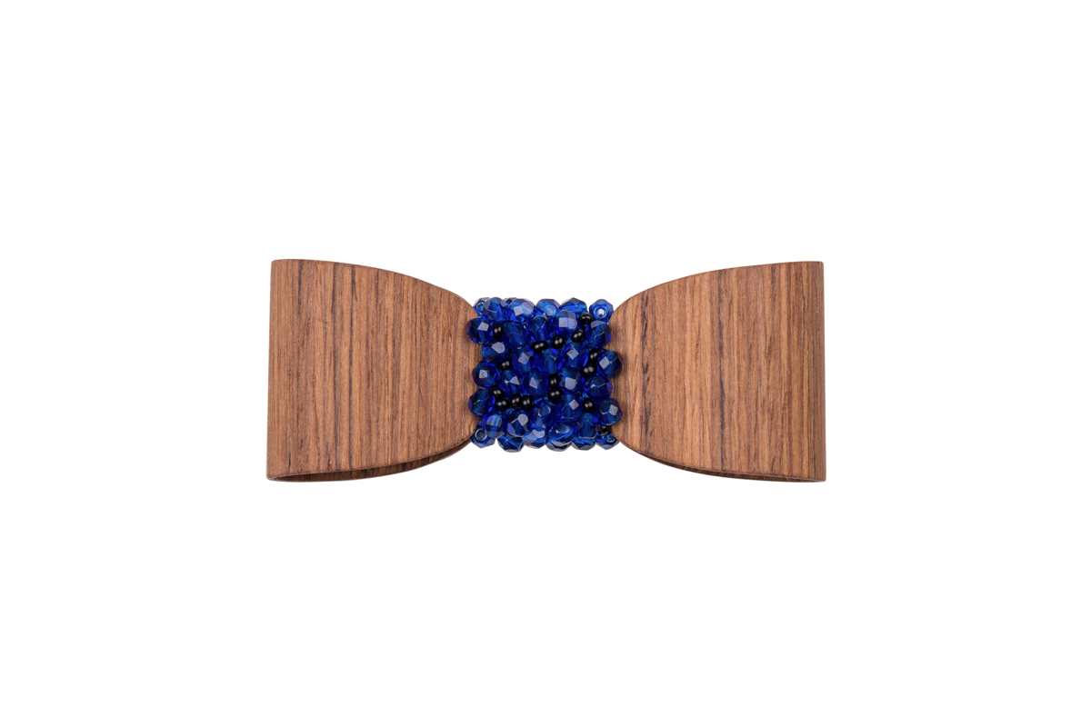 Ainutlaatuinen 3D puinen rintakoru on käsityönä valmistettu naisellinen asuste, jota koristavat yksitellen ommellut helmet ja koristekivet.