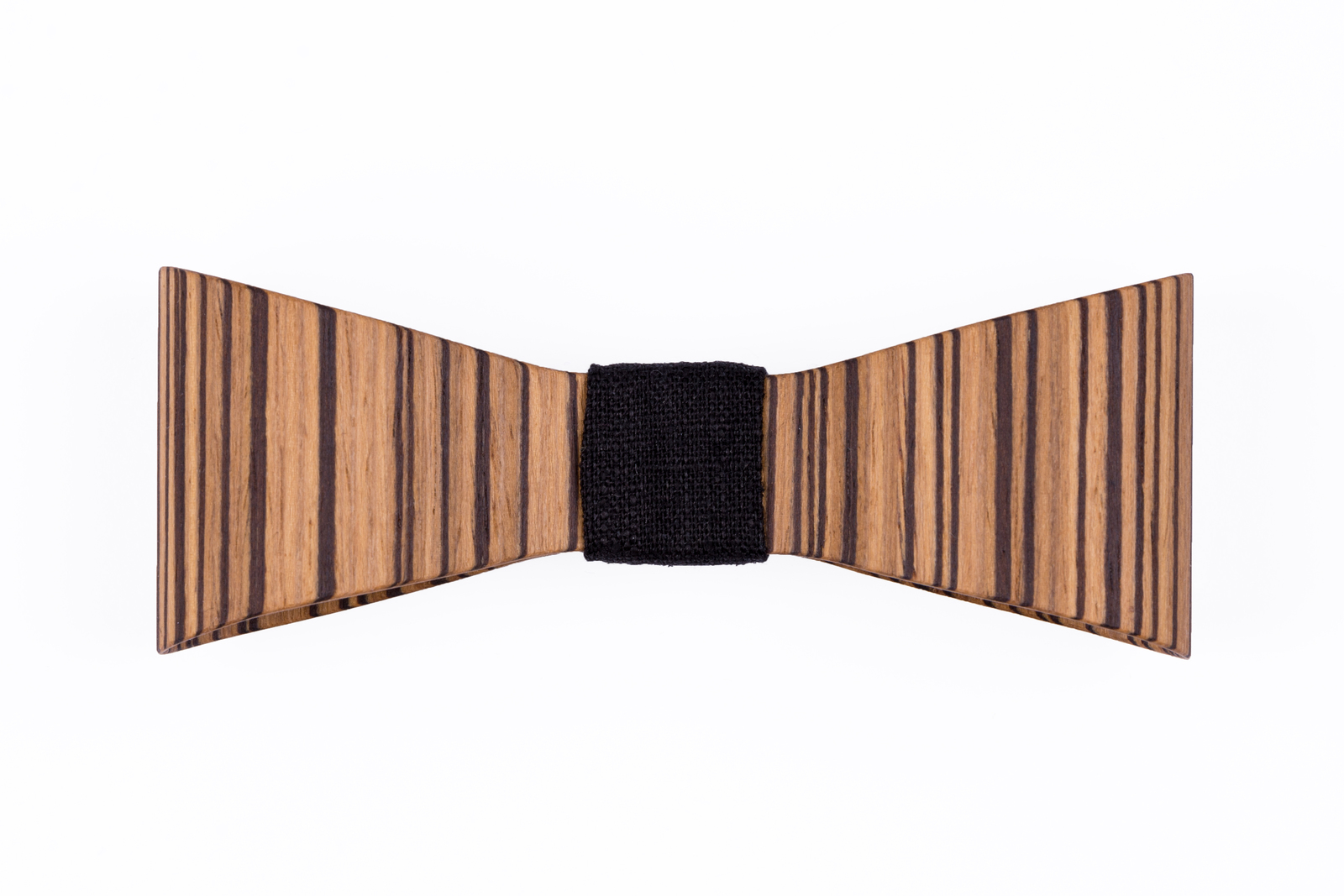 A variety of precious wood types that have been finished with natural oil wax have been used to create 3D wooden bow ties. Each finished wooden bow tie is unique thanks to the unrepeatable texture of the wood.