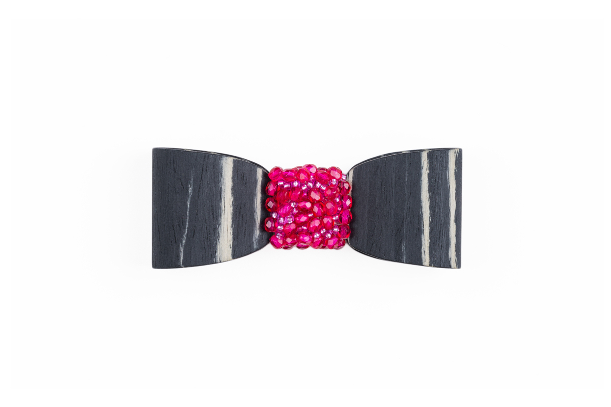 Ainutlaatuinen 3D puinen rintakoru on käsityönä valmistettu naisellinen asuste, jota koristavat yksitellen ommellut helmet ja koristekivet.
