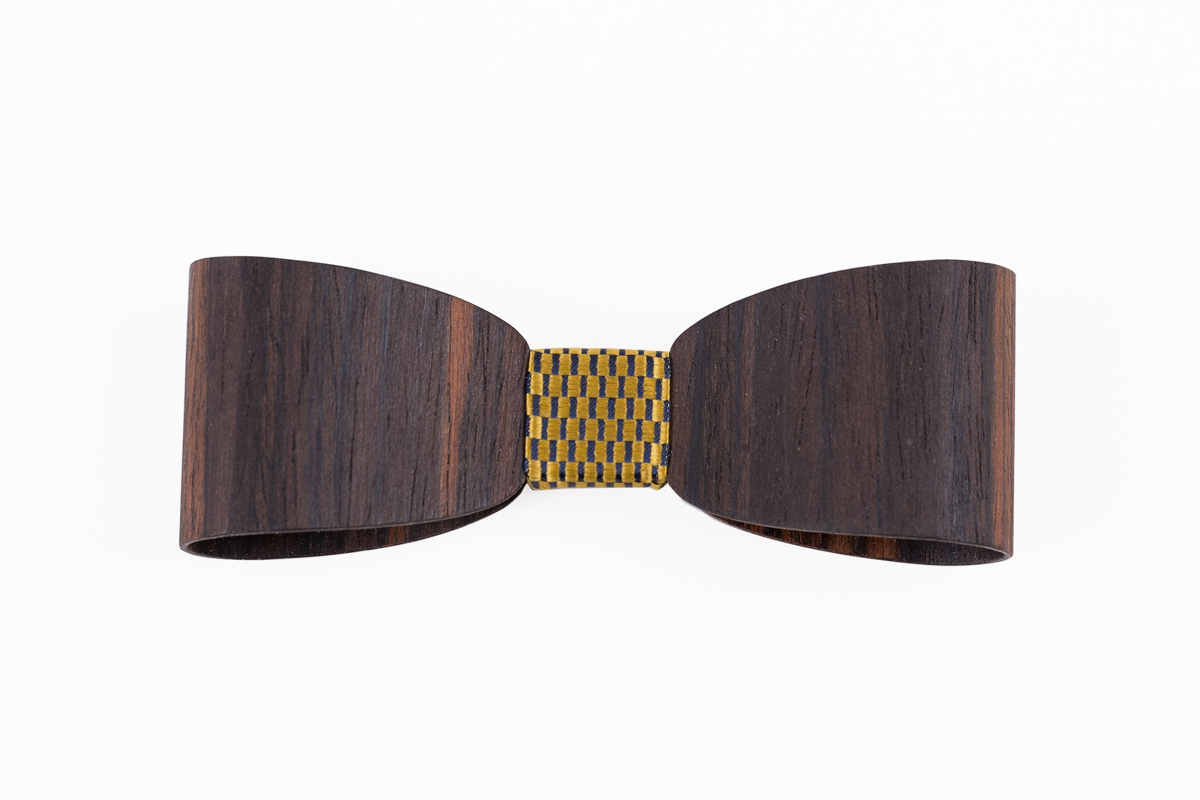 A variety of precious wood types that have been finished with natural oil wax have been used to create 3D wooden bow ties. Each finished wooden bow tie is unique thanks to the unrepeatable texture of the wood.